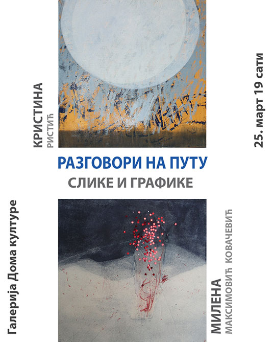 U galeriji Doma kulture ”Stevan Mokranjac” u utorak 25. marta od 19 sati biće otvorena izložba slika i grafika ”Razgovori na putu” beogradskih umetnica Milene Maksimović Kovačević i Kristine Ristić.