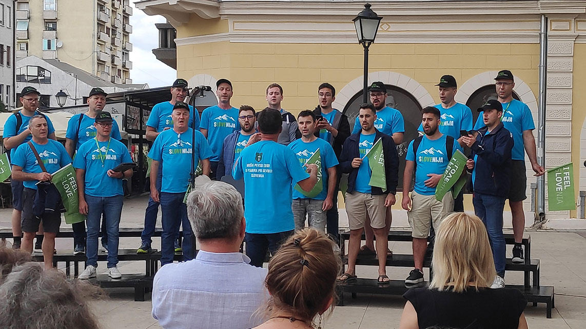 Мушки хор „Планина при Севници“ (Словенија) којим диригује Матеј Ромих, за свој наступ на тргу одабрао је композиције словеначких аутора „Спомен на зимску вечер“ и „Жетва“.