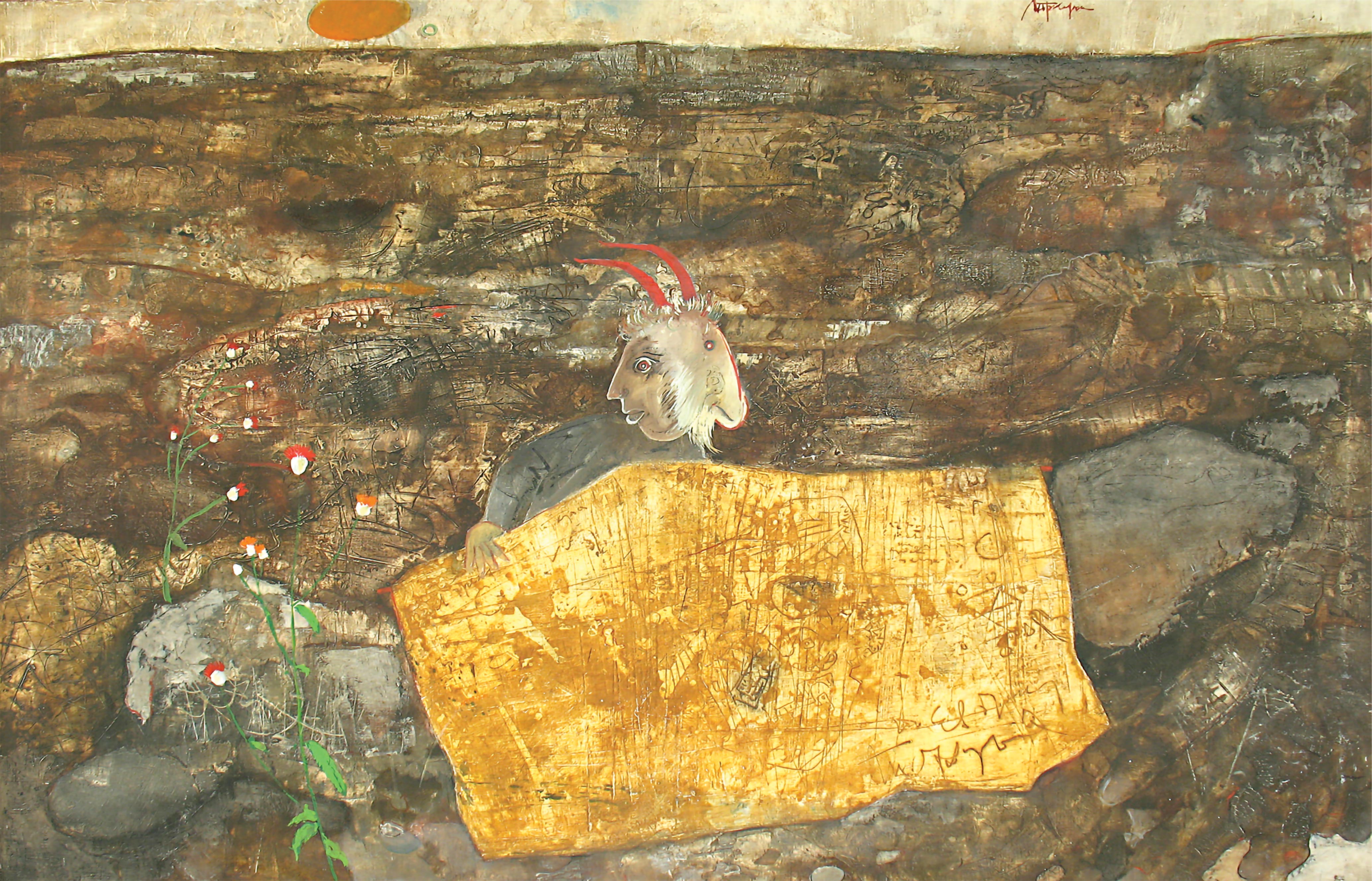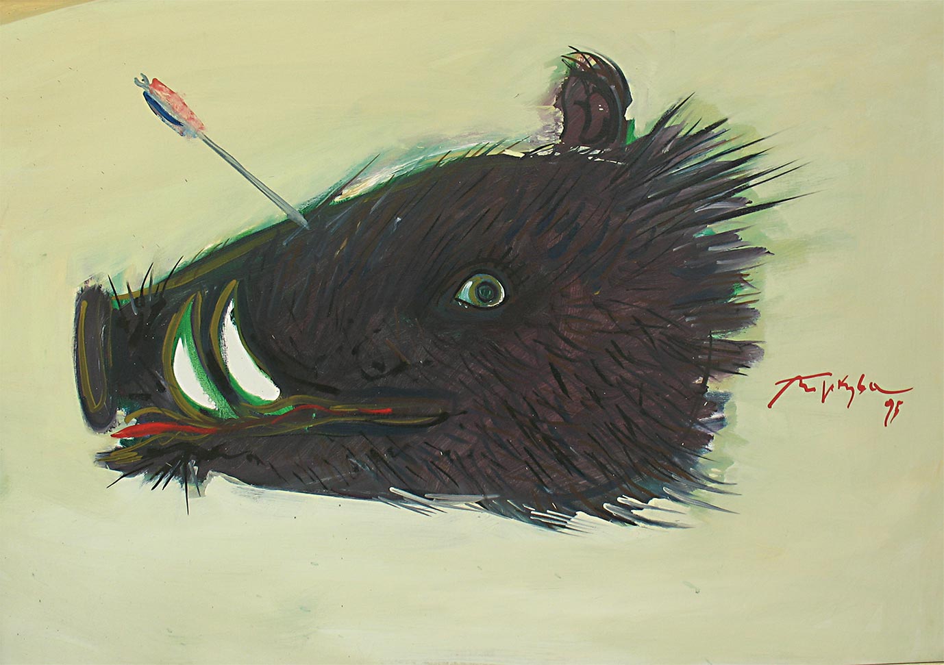 „ГЛАВА ДИВЉЕ СВИЊЕ“, 1999, акрилик на папиру, 100×70 цм