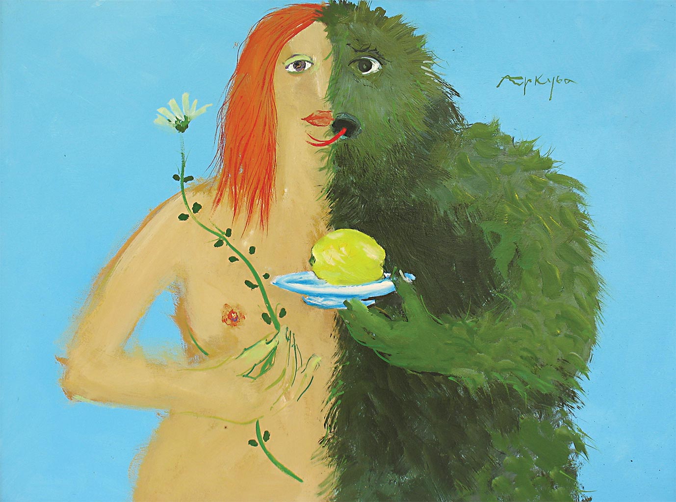 „ЛЕПОТИЦА И ЗВЕР“, 2002, уље на платну, 80×60 цм