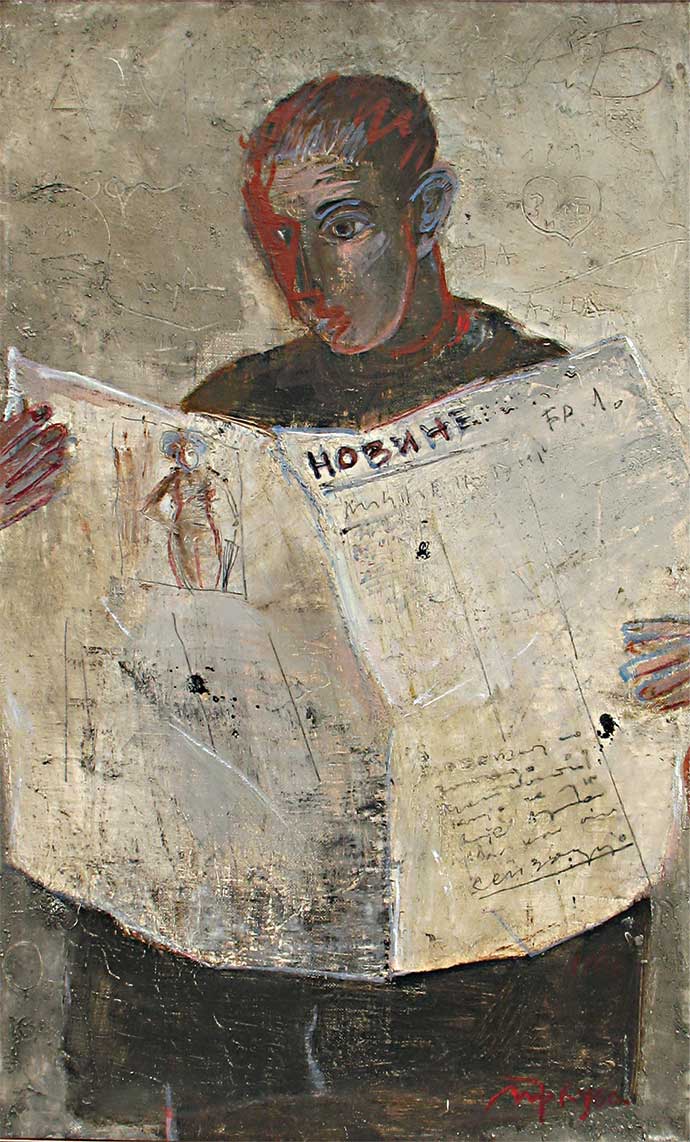 „ЧИТАЧ НОВИНА“, 1964, јајчана темпера на платну, 35×50 цм
