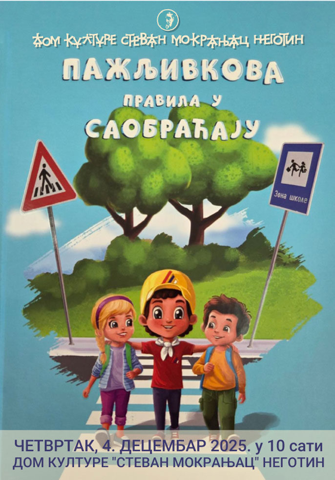 Агенција за безбедност саобраћаја Републике Србије и Општина Неготин организују едукативну представу за децу „Пажљивкова правила у саобраћају“, која ће бити одржана у Дому културе „Стеван Мокрањац“ у четвртак 04. децембра 2025. године, са почетком у 10:00 часова.