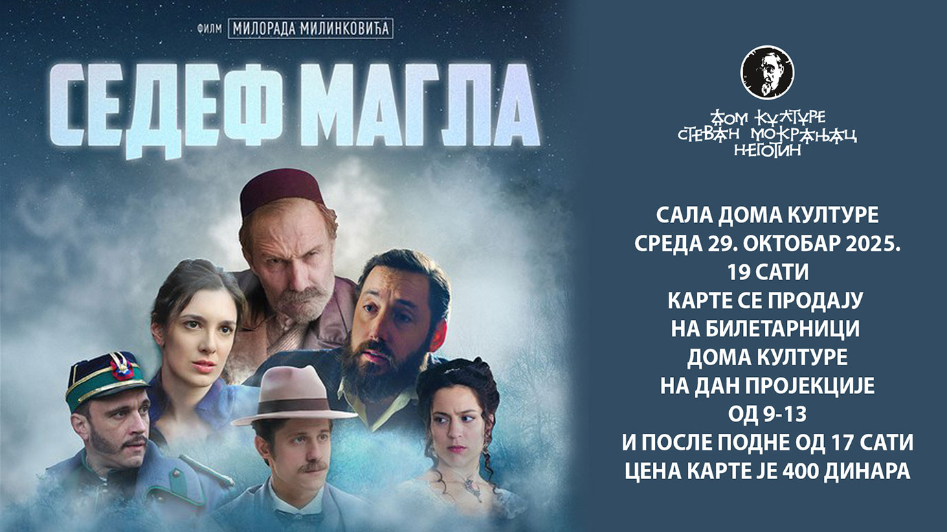 29. октобар /СРЕДА/ у 19.00 сати СЕДЕФ МАГЛАПродаја улазница је на дан пројекције филмапре подне од 9.00 до 13.00 сати и после подне од 17.00 сати